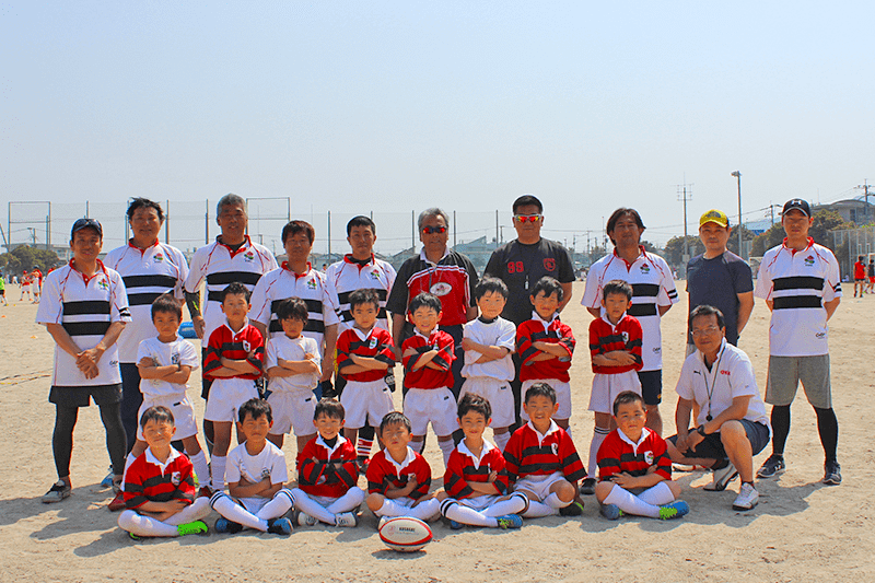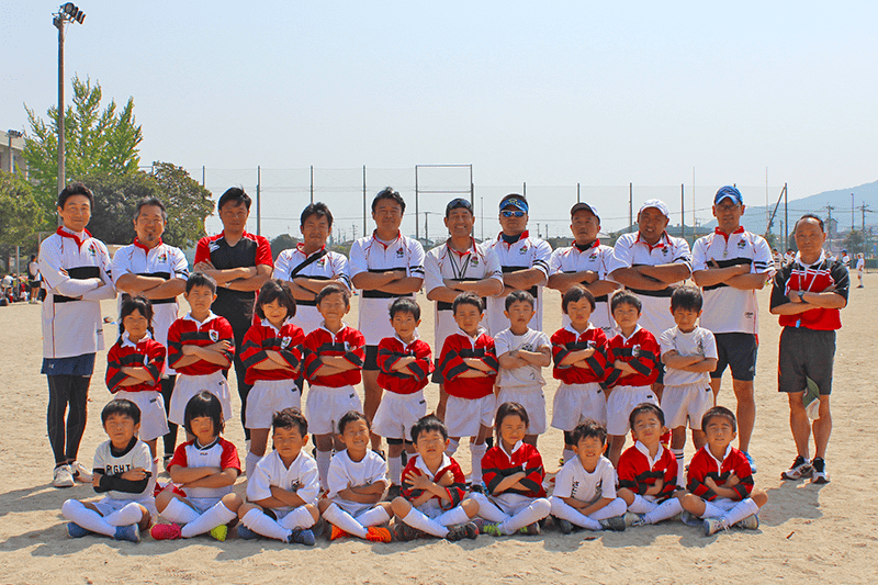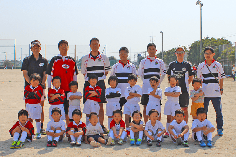 個性溢れるやんちゃ坊主の男の子16名で人数はちょっと少なめですが、どの学年にも負けない陽気で楽しく元気なチームです。今は、ラグビーに対する基礎(体力、柔軟、基本姿勢など)と共に団体行動に大切なチームワークと仲間つくりに力を入れ、毎週日曜わいわいがやがや楽しく練習に励んでいます。コーチの先生方も、子供たちにラグビーを大好きになって貰えるように練習には工夫を凝らして遊びも交えながら、笑顔で一緒に走ったり転んだりしています。女の子の参加も大歓迎ですよ。是非、一度グラウンドに見に来てください。