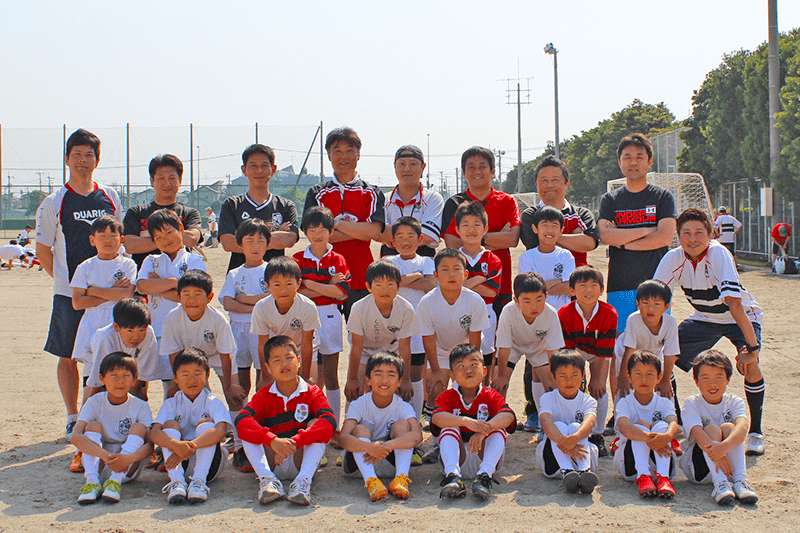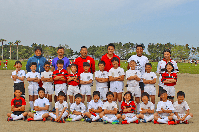 5年生はみんなラグビーが大好きで笑顔の絶えない仲良しチームです。個性豊かで心優しい子供達が多いのが特徴です。「大きな声での挨拶」や「話しを聞く時は相手の目を見る」といった礼儀やしつけ、グランドでは子供達が自分の意思を持って行動を起こし、仲間と声を掛け合い、意味のあるプレーができるように指導をしています。また、一人一人の個性や能力に見合った丁寧なコーチングを行っております。こんな楽しい仲間たちと一緒にラグビーしませんか?まだまだ仲間を増やしたいので、ぜひ見学に来てください!
