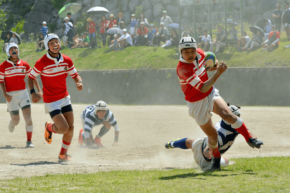 前半5分、草ヶ江の先制トライで好スタートを切ります。