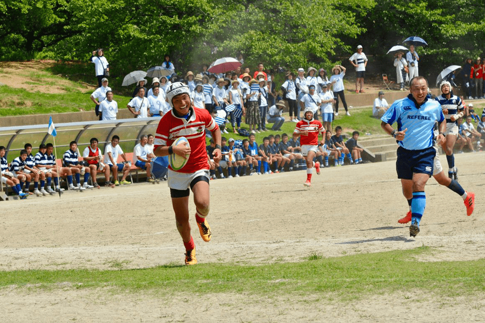 しかし、2本トライを返されて一時逆転されるものの、前半終了間際にインターセプトからトライを奪い14-10とリードして折り返します。