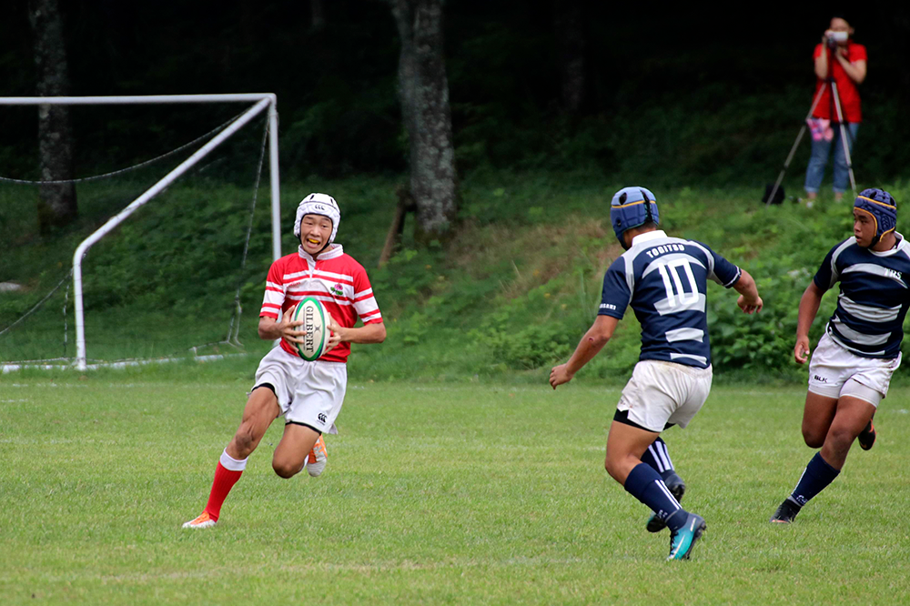 蒸し暑さに加え、前日の疲労が選手たちに残っていましたが、前半開始から優位に立ち、外展開からの先制トライ!