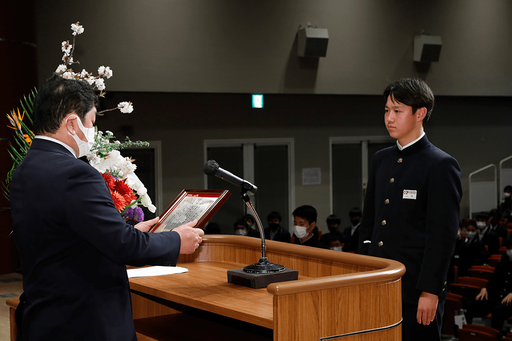 合屋会長より卒業生一人ひとりに銅板の卒業証書が授与されました。