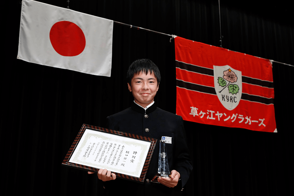 4歳から卒業までの11年間のクラブ公式行事を全て出席した耀一(ヨウイチ)にスーパー皆勤賞が表彰されました。