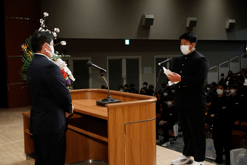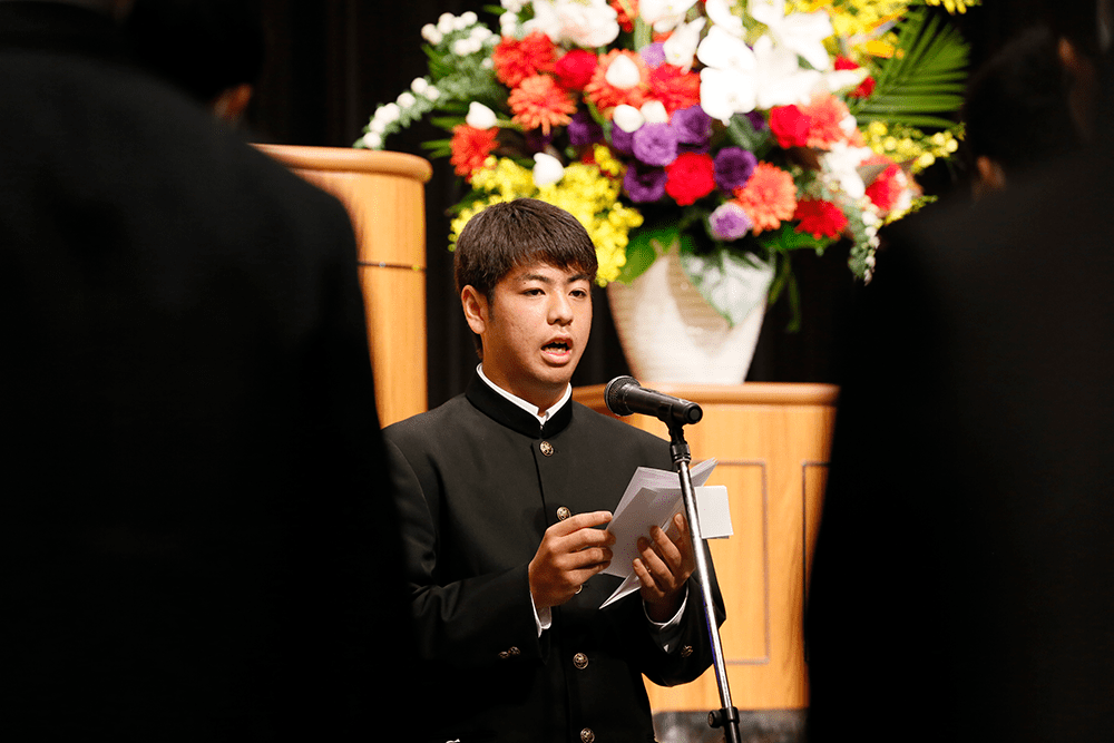 在校生を代表して51代主将、テツオの送辞。先輩との思い出や感謝の気持ち、全国制覇の目標を引き継ぐ決意を述べました。