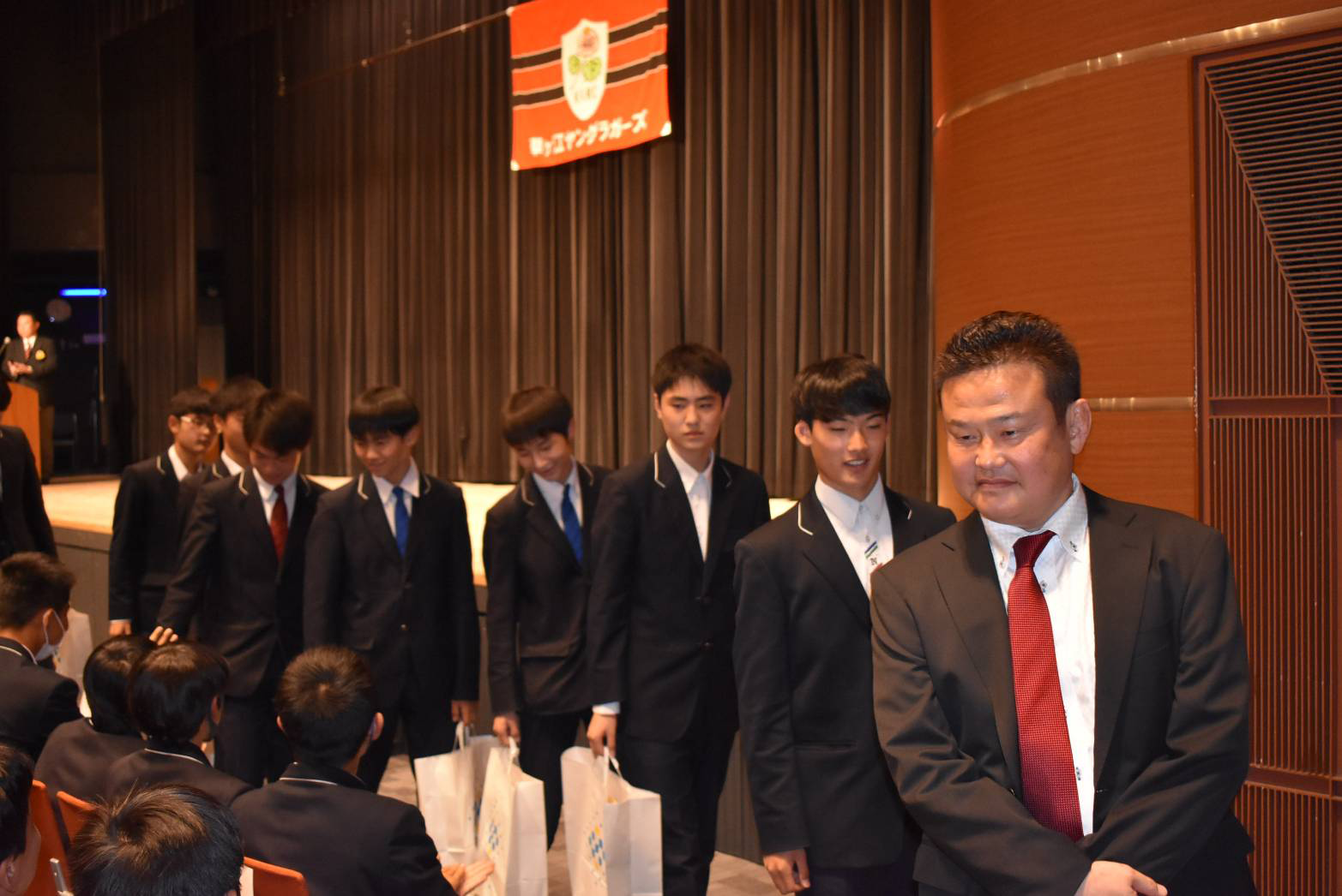 本江篤識キャプテンの卒業生代表答辞では、これまでお世話になった方々や両親への想いが語られ、参加者の胸に熱いものが込み上げてきました。