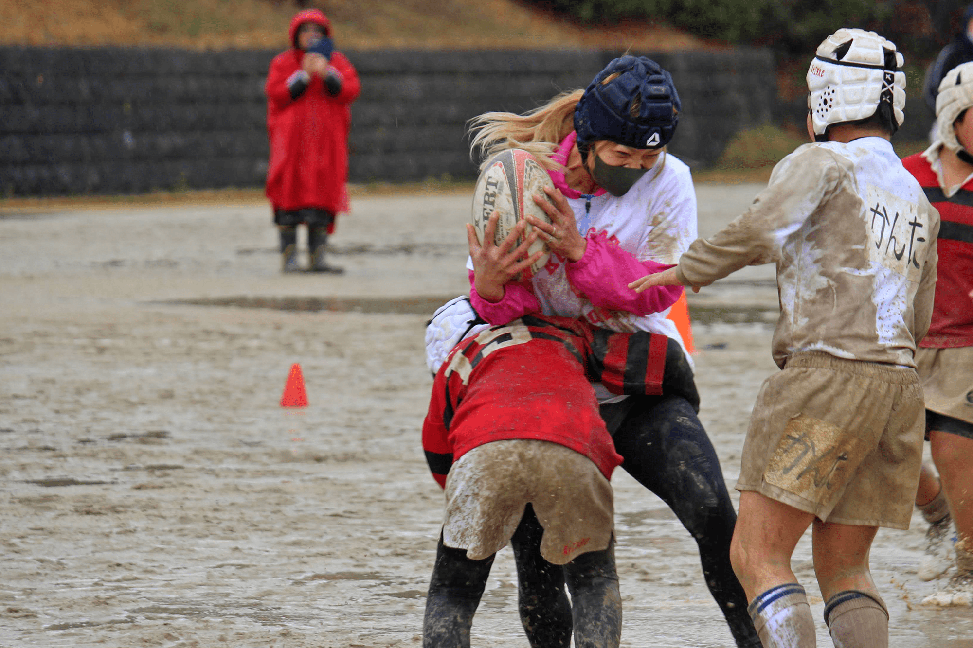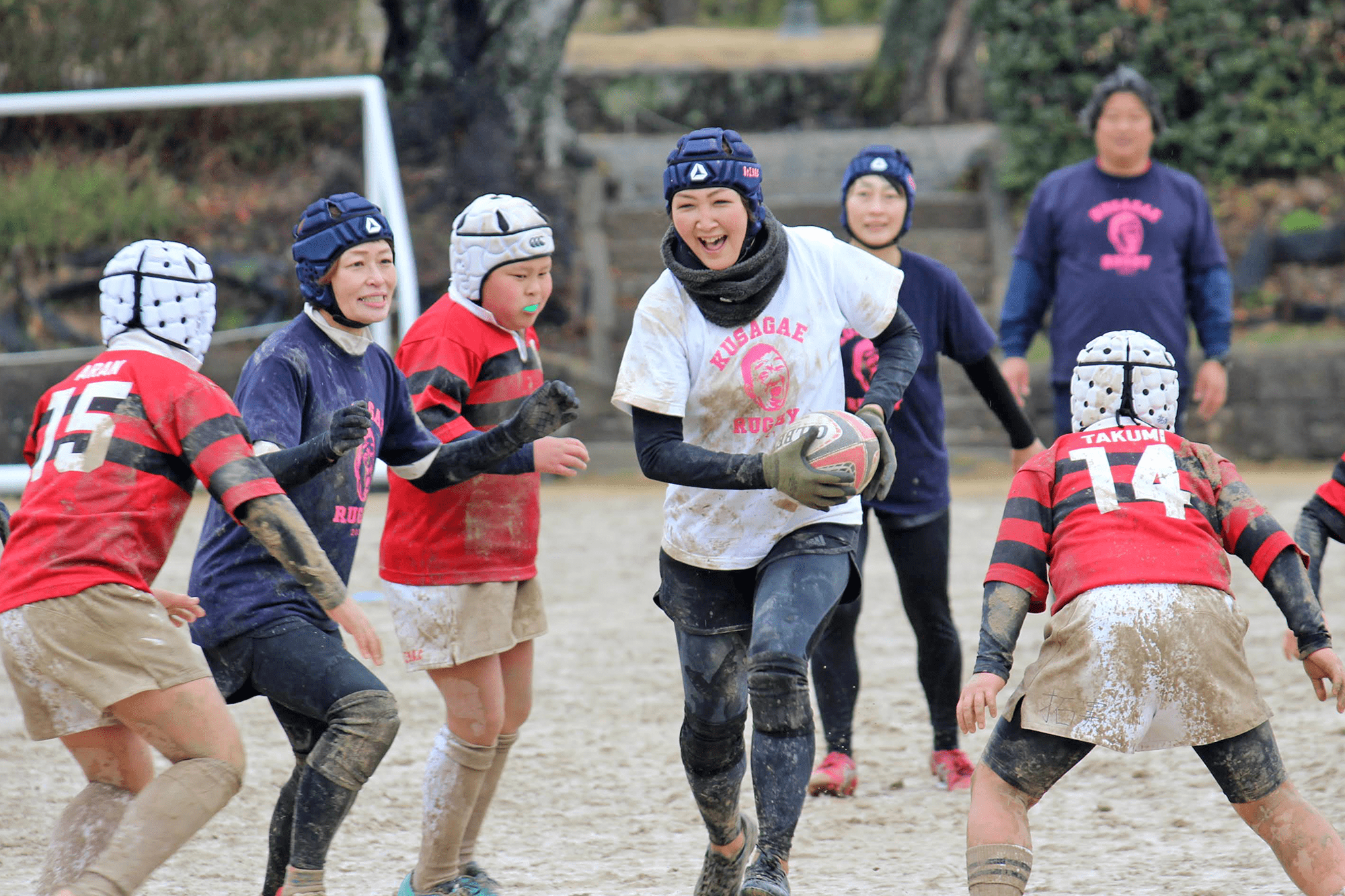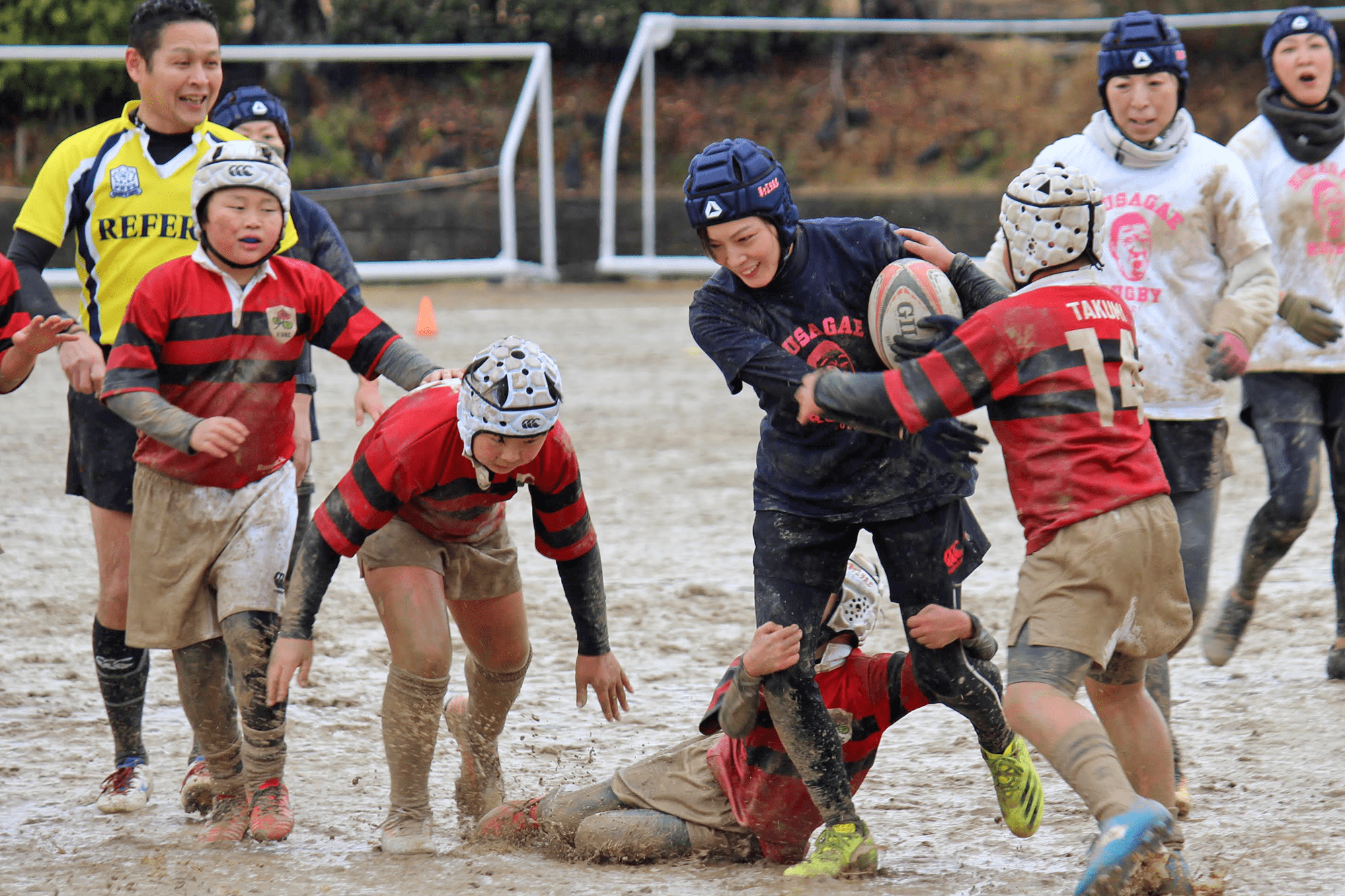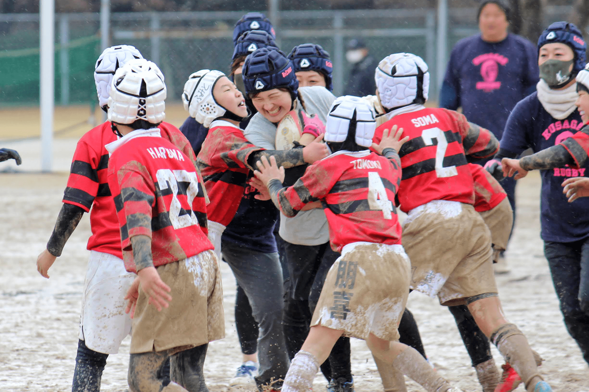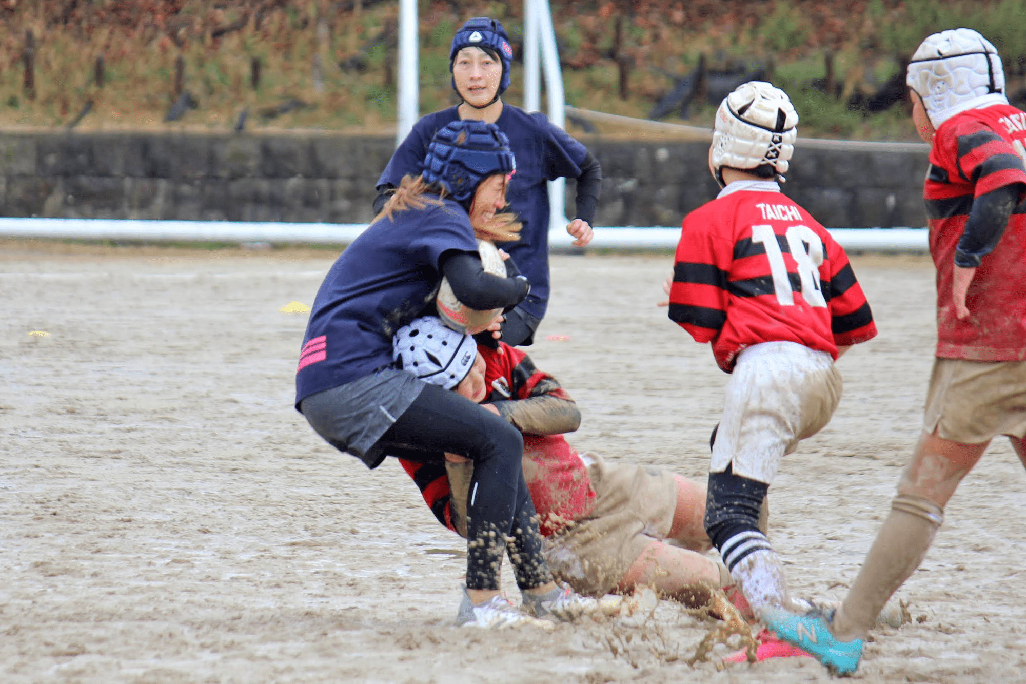 母チームも子どもたちへの容赦ない激しいタックル!