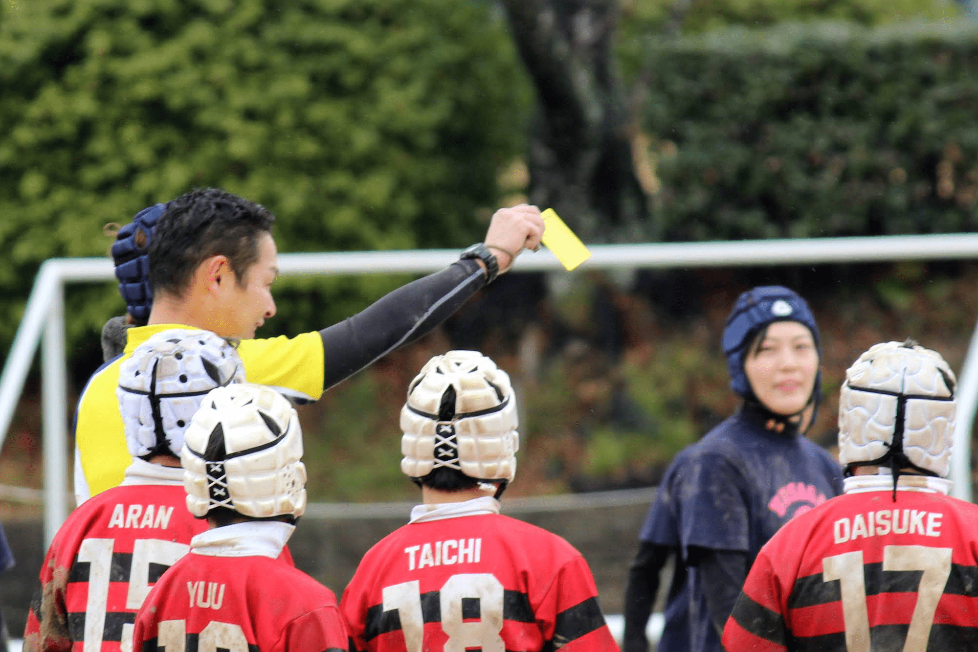 母チームの激しいタックルに母子ラグビー史上初めてのイエローカードが出ました^^;
