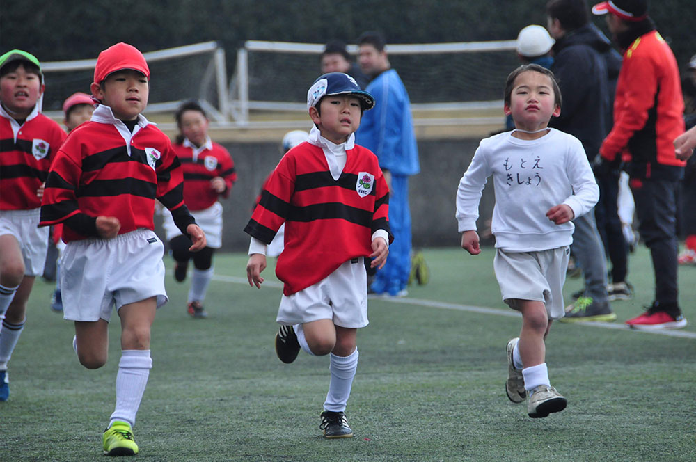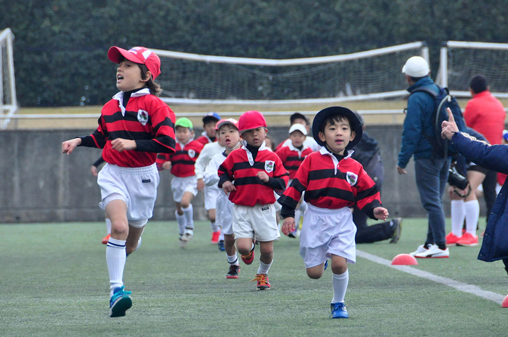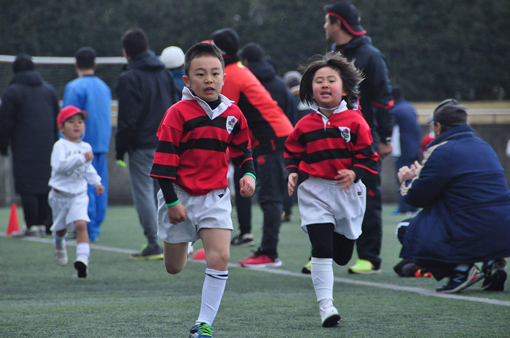 冬の草ヶ江恒例行事であるマラソン大会と母子ラグビーが春日公園球技場で開催されました。
