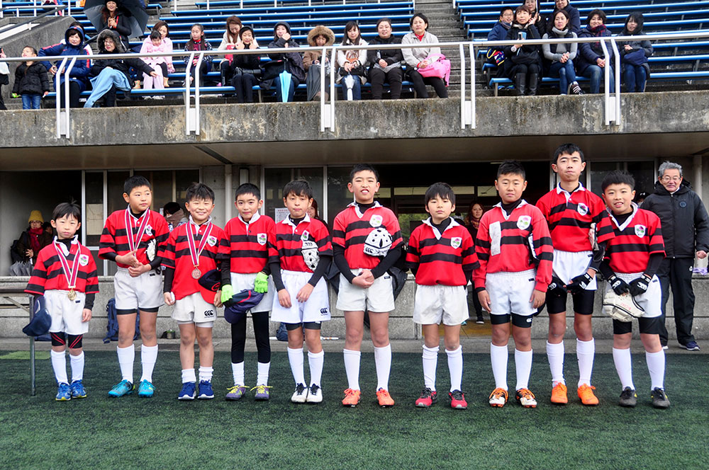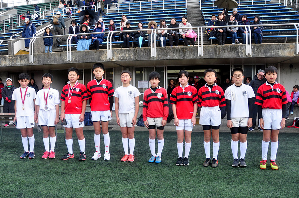 マラソン大会の後は草ヶ江名物の小学4年生の子供たちと母による母子ラグビーが行われました。