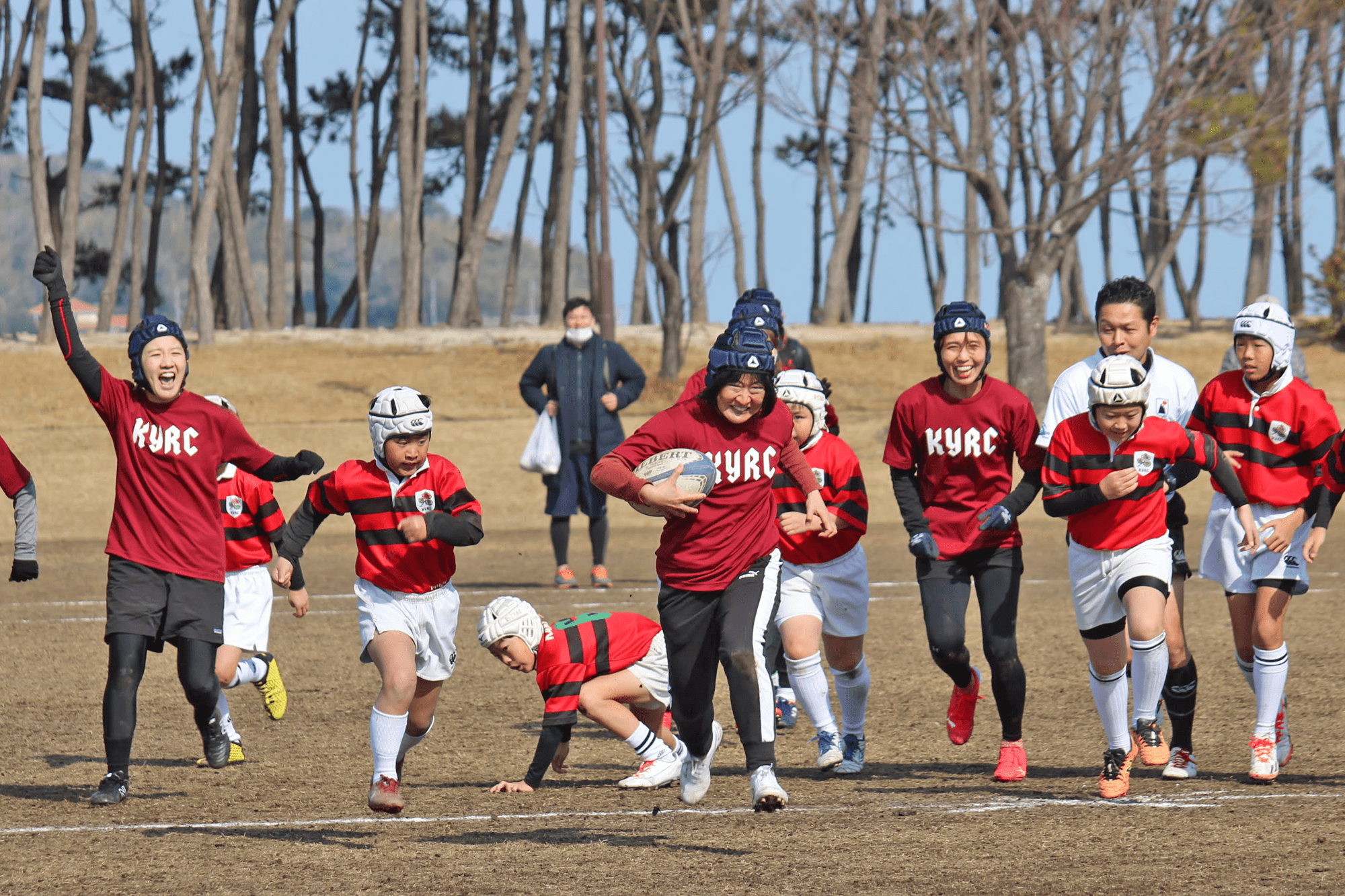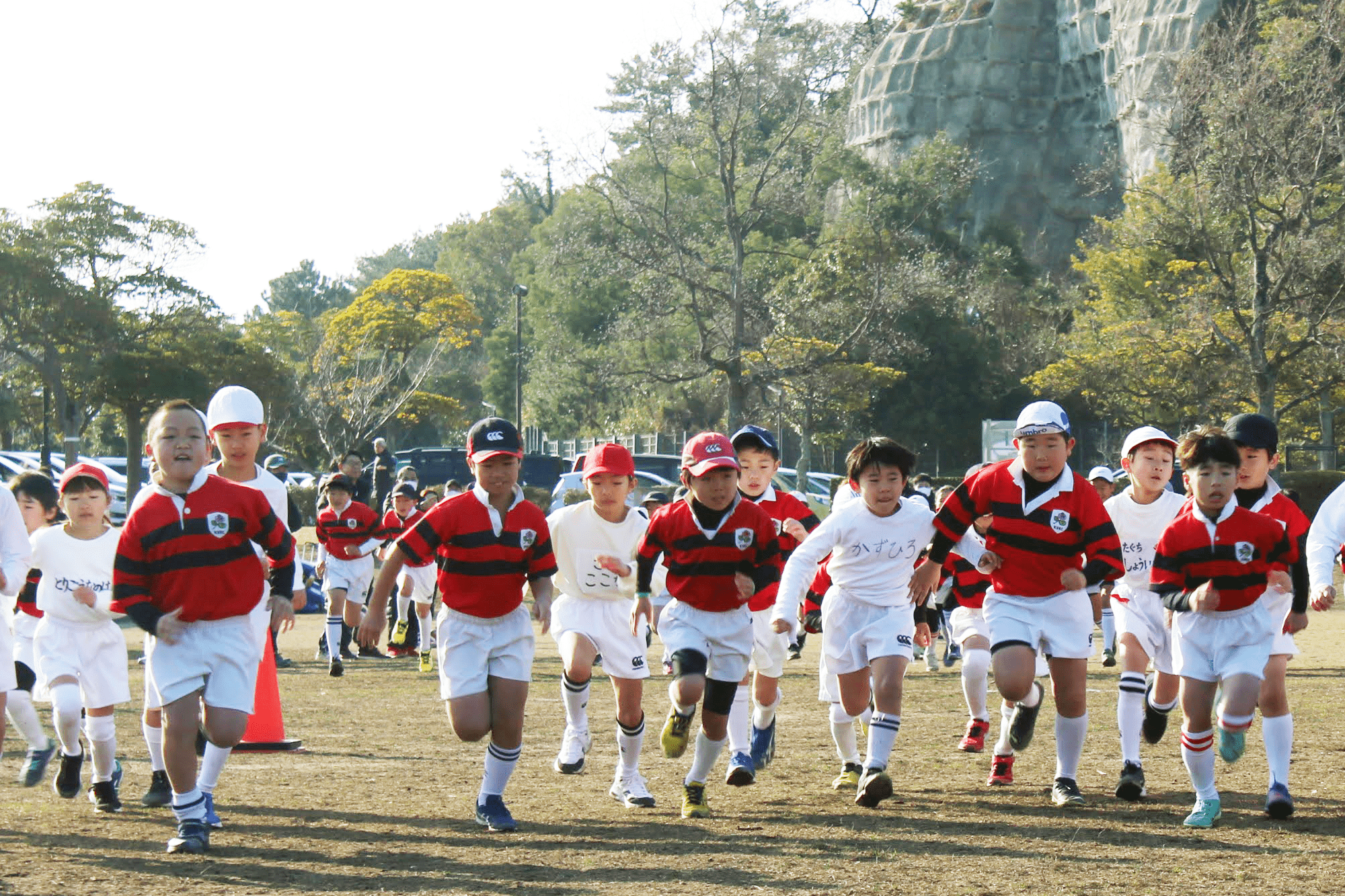 冬の草ヶ江恒例行事、マラソン大会と母子ラグビーが小戸公園にて開催されました。
