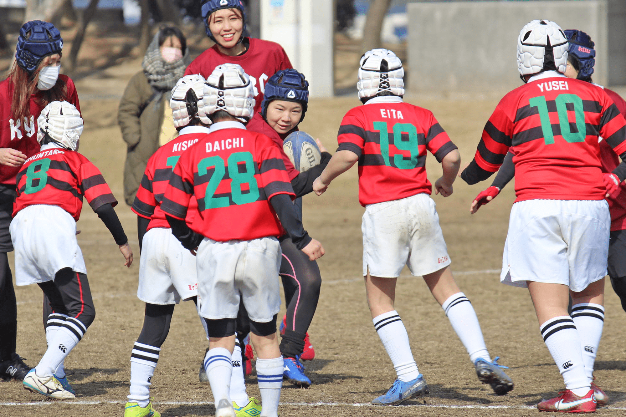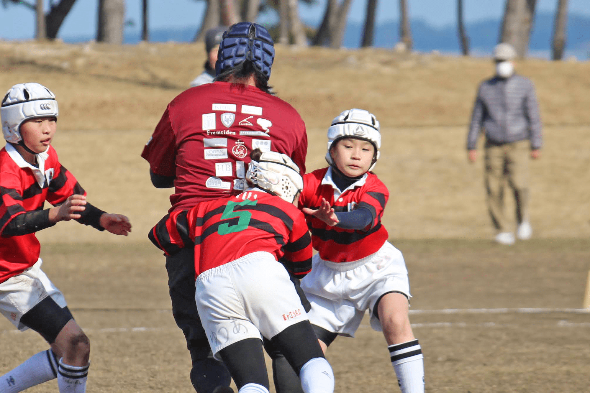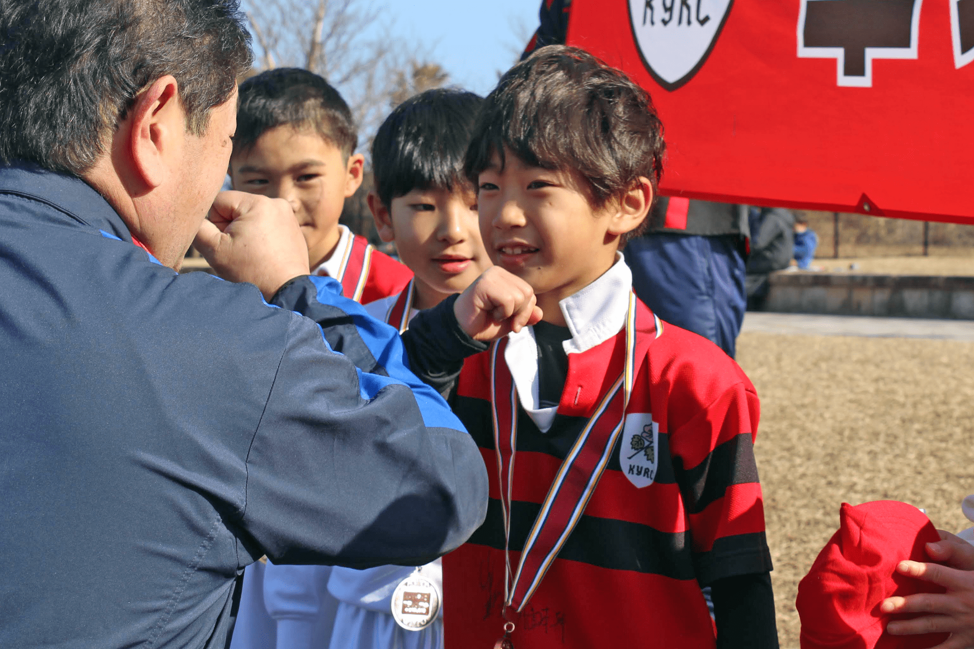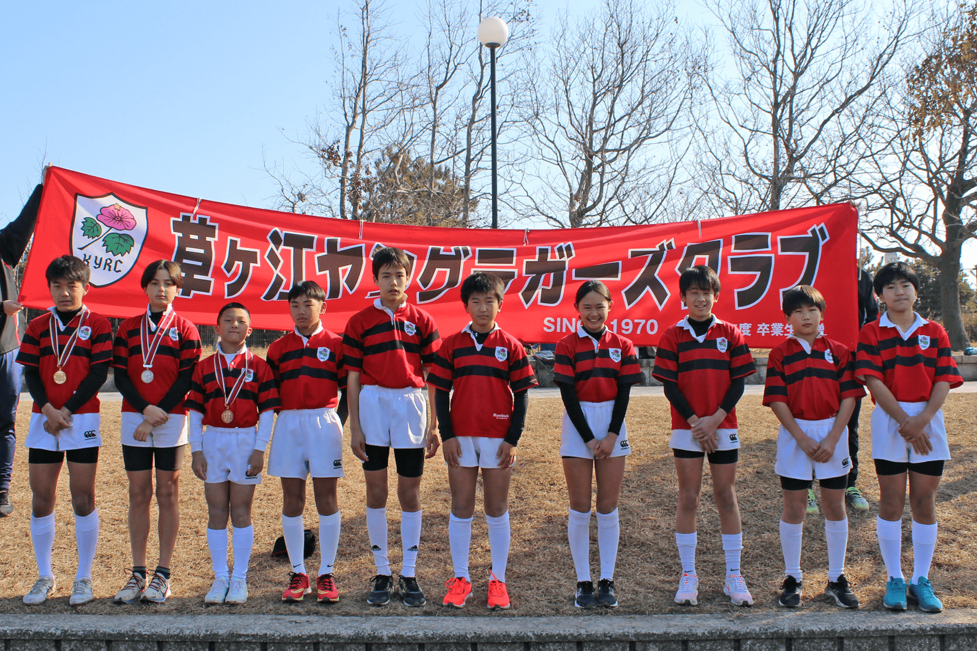 今年度は3名の指導者がC級レフリーの資格を取得し、レフリージャージの授与式がマラソン大会後に行われました。コーチ・指導者のみならず、学年委員・お母様でも、ラグビー経験の有無を問わず、どなたでもレフリー資格にチャレンジ可能です。草ヶ江からひとりでも多くのレフリー資格取得をお願いします。