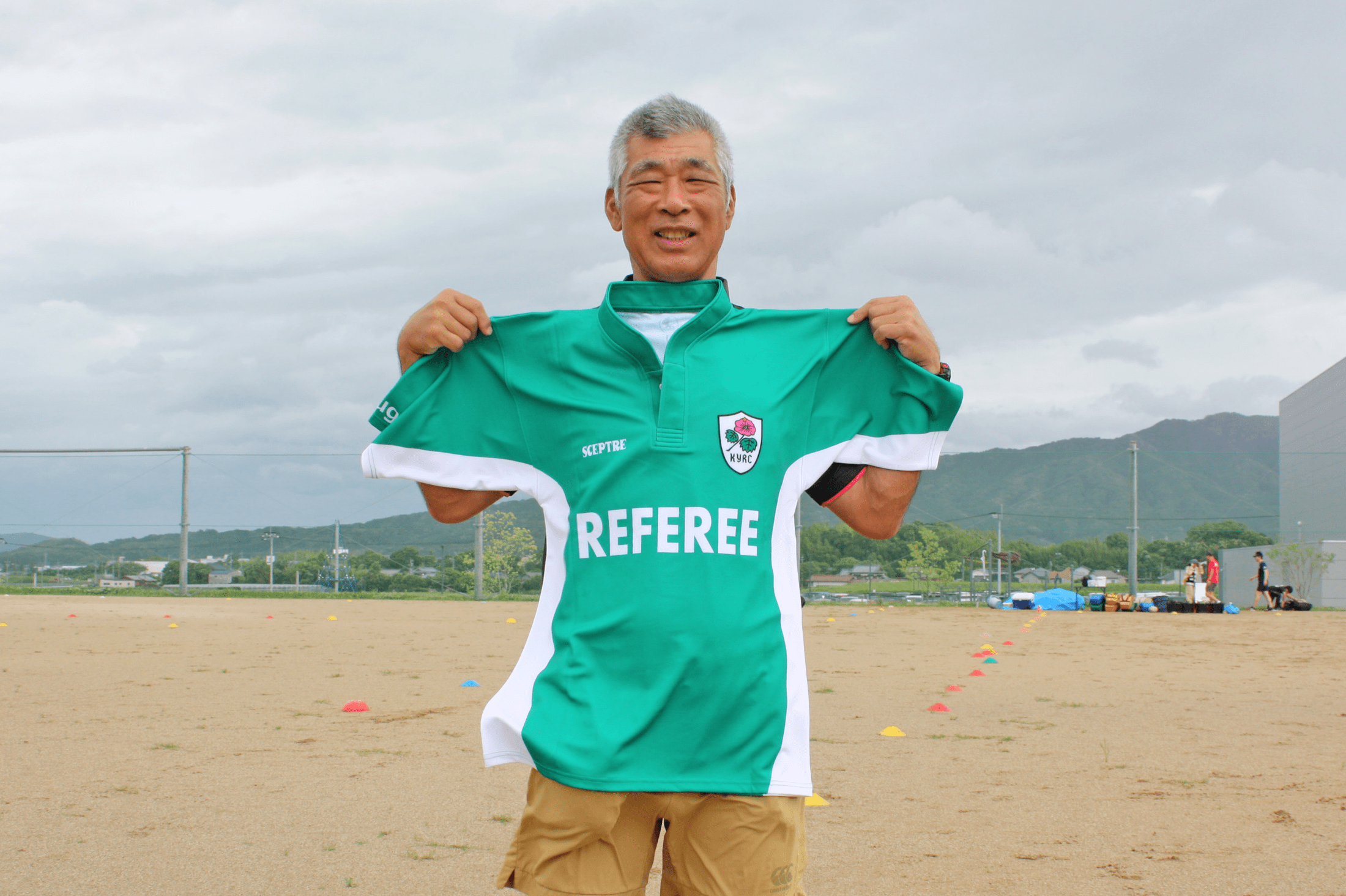 また、C級レフリーの資格を取得した指導者へレフリージャージの授与が行われました。ラグビーの試合はレフリーがいなければ成り⽴ちません。⼦供たちの成⻑のため、草ヶ江からひとりでも多くのレフリー資格取得をお願いします。