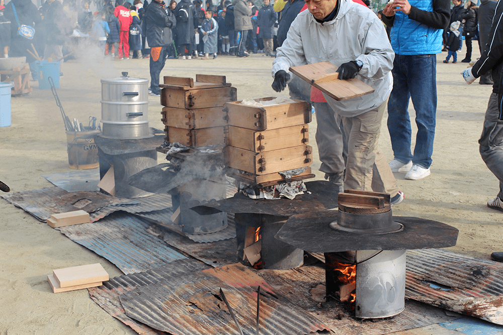 中学のお母様方お手製の草ヶ江名物「美人鍋」が振る舞われました。