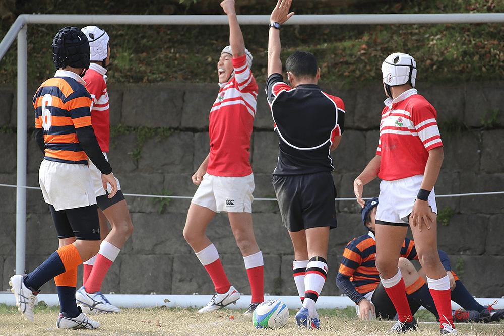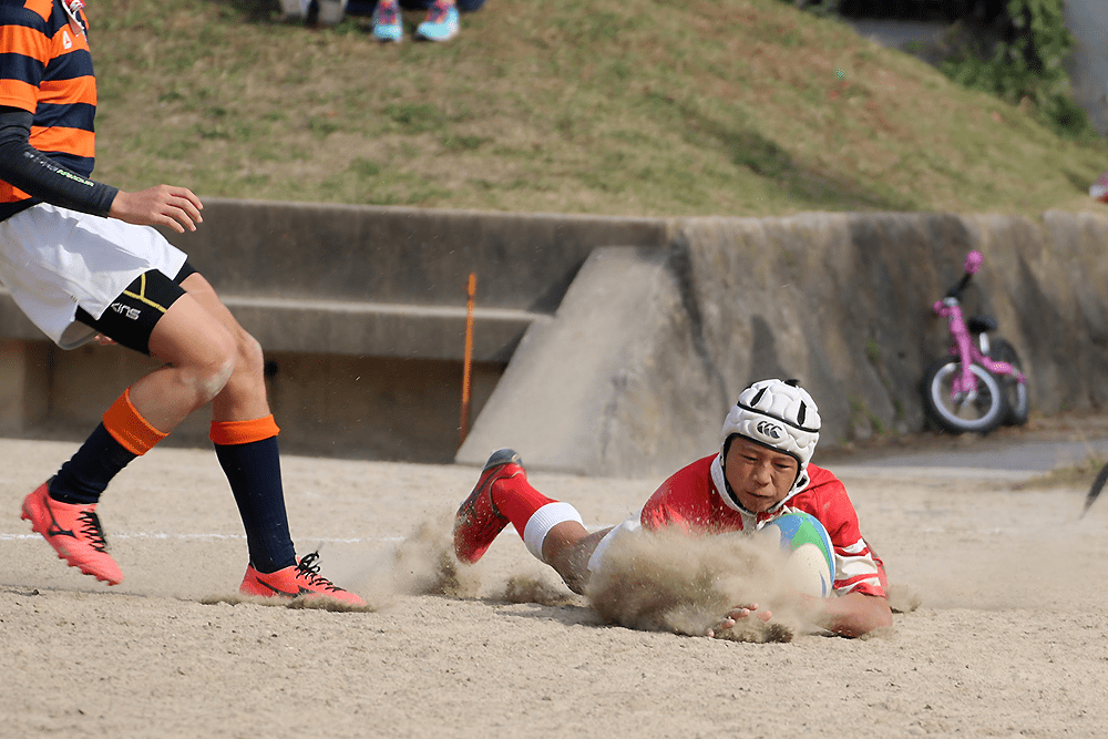 しかし、果敢に縦への突進で相手のディフェンスを突破して先制トライ!