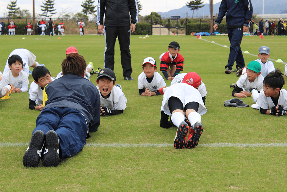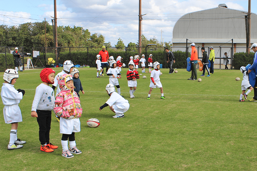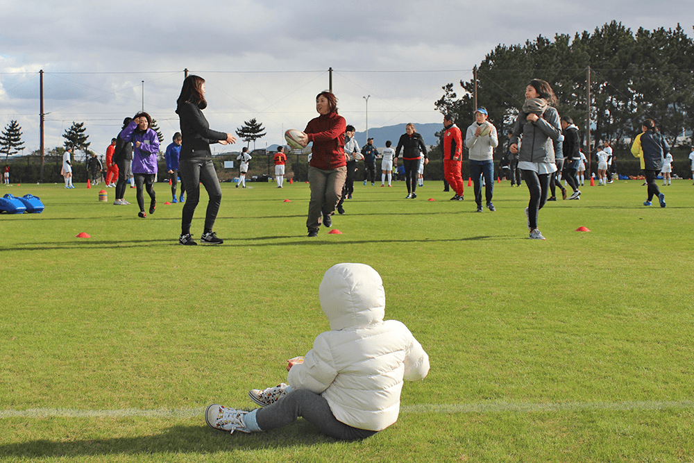 4年生のお母様方は母子ラグビーに向けて汗を流していました。