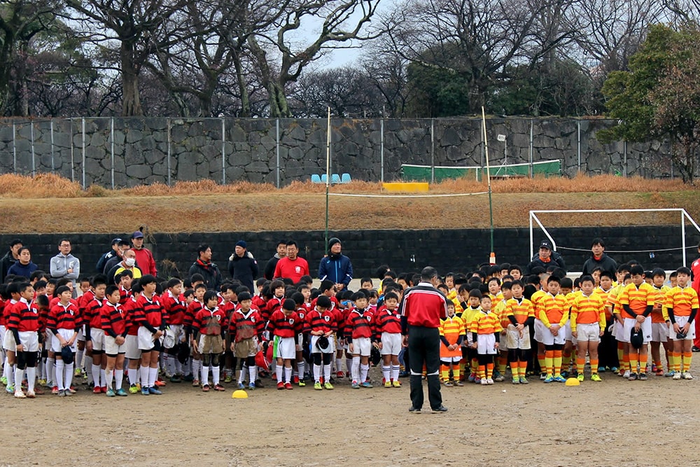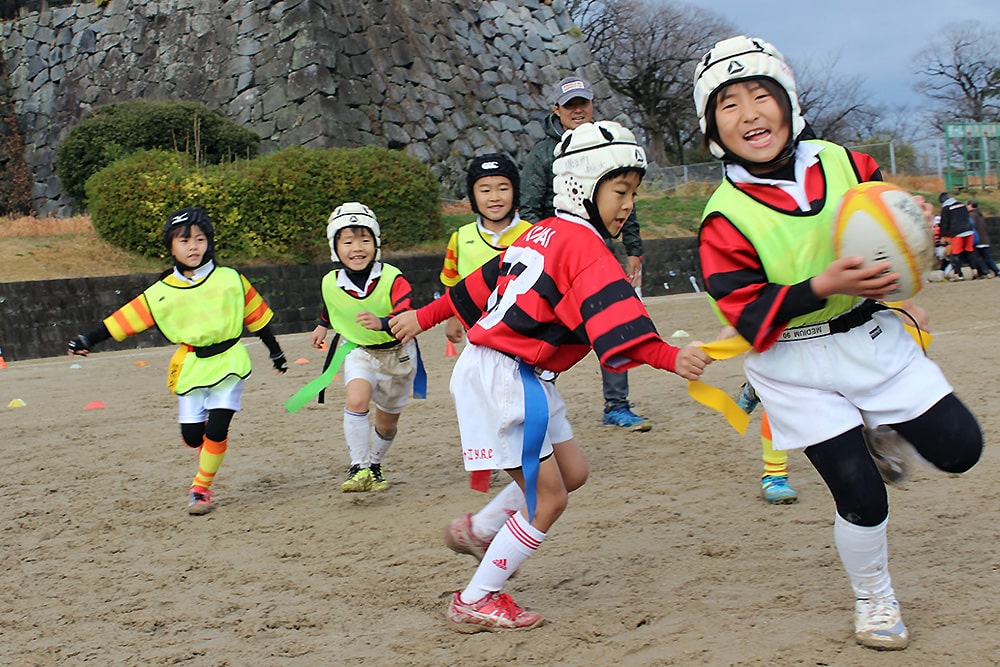 小学1・2年生は九州電力キューデンヴォルテクスから講師をお迎えしてタグラグビー教室が開催されました。