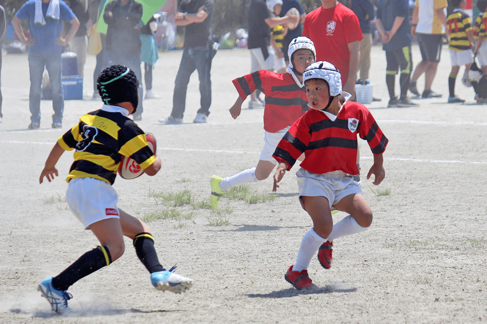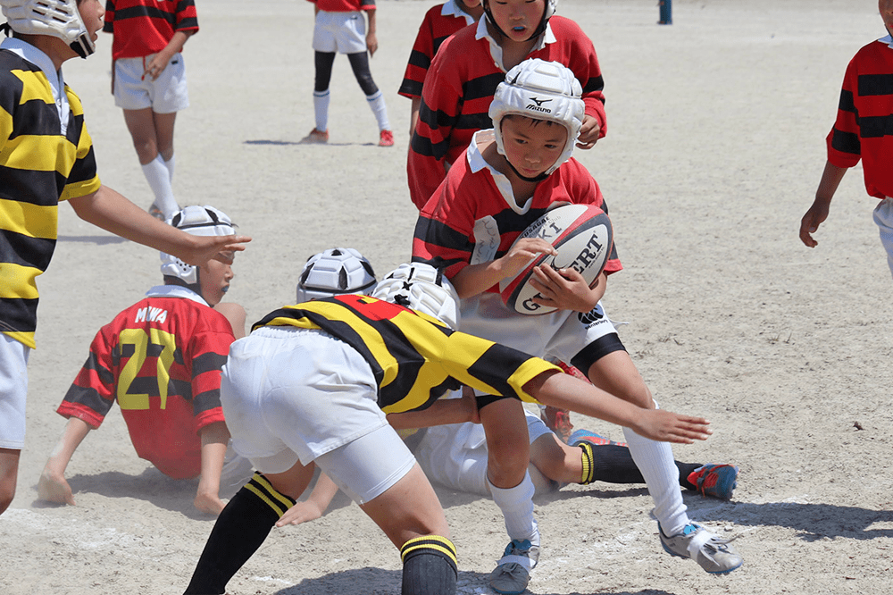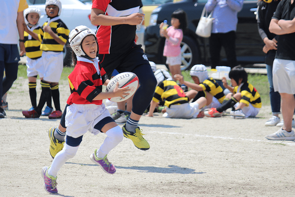 2年生はボールを繋いでトライに結びつけることが出来ました。女の子ものびのびプレーでトライ!