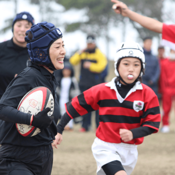 マラソン大会の後は、草ヶ江の冬の名物行事、小4の子供たちとその母による母子ラグビ ...