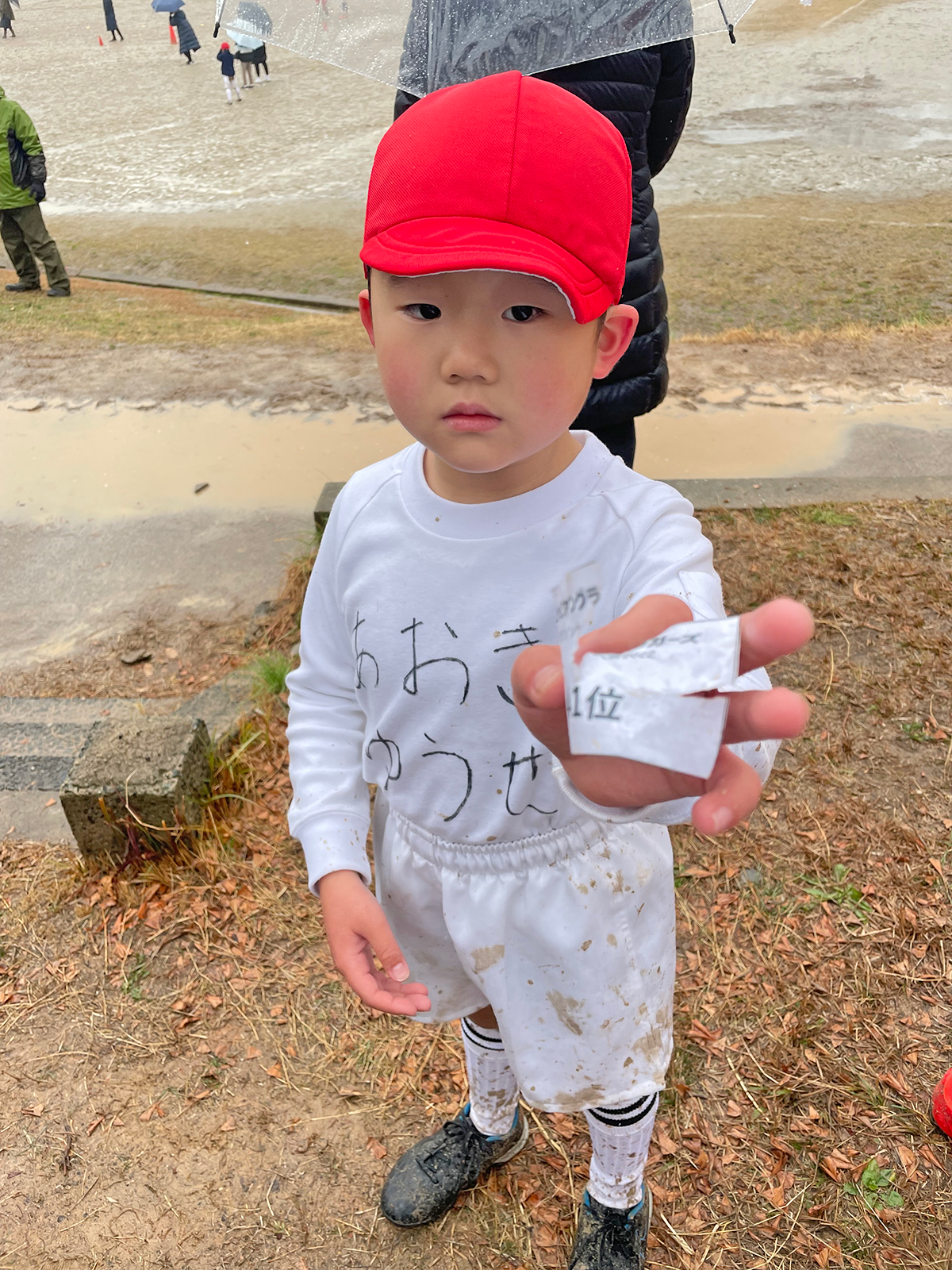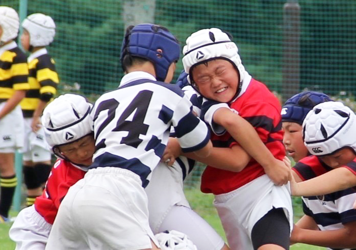 お父さん高校からの親友が、1年前に草ヶ江に子供を入部させていて、ずっとお勧めされていました。理由は、「仲間のために、自分が犠牲となってタックルに行く精神に感銘を受けた」というものでした。一人っ子ということもあり、「仲間」を最も感じる環境に身を置かせたいと思っていましたので、まずは見学に行くことにしました。親は入部させたい気持ちが強かったのですが、悠成は直前の幼稚園のマラソン大会で思いっきり最下位になるほど運動が苦手だったので、当時最も仲良しだった運動が得意な友達家族も一緒に連れていき、一緒に入部してもらうことに成功しました。――入部して良かったこと、成長したところ